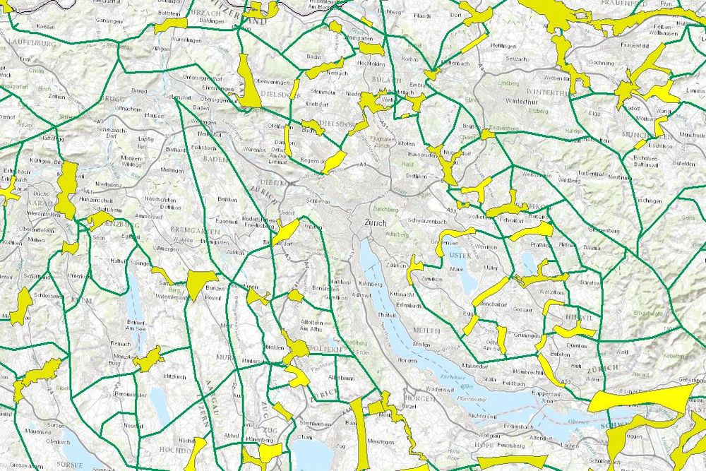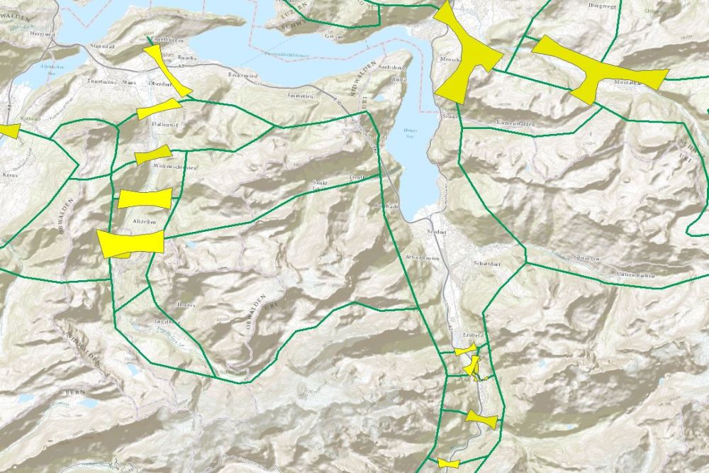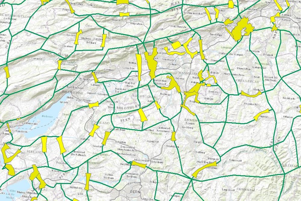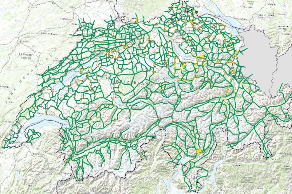 Ausweisung der Korridorachsen für Wildtiere in der Schweiz. Differenzierung in regional sowie überregional bedeutsamen Wildtierkorridore für die gesamte Schweiz. Weiterführende Informationen unter www.bafu.admin.ch/biodiversitaet/ verfügbar.